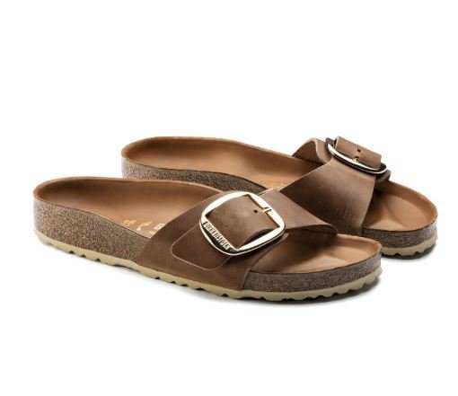 Birkenstock Madrid Big Buckle bruin vetleer narrow sandalen dames