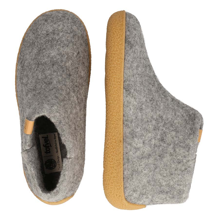 Tofvel, model Rabara, is door de aanwezigheid van de rubber loopzool tevens geschikt voor buitenshuis