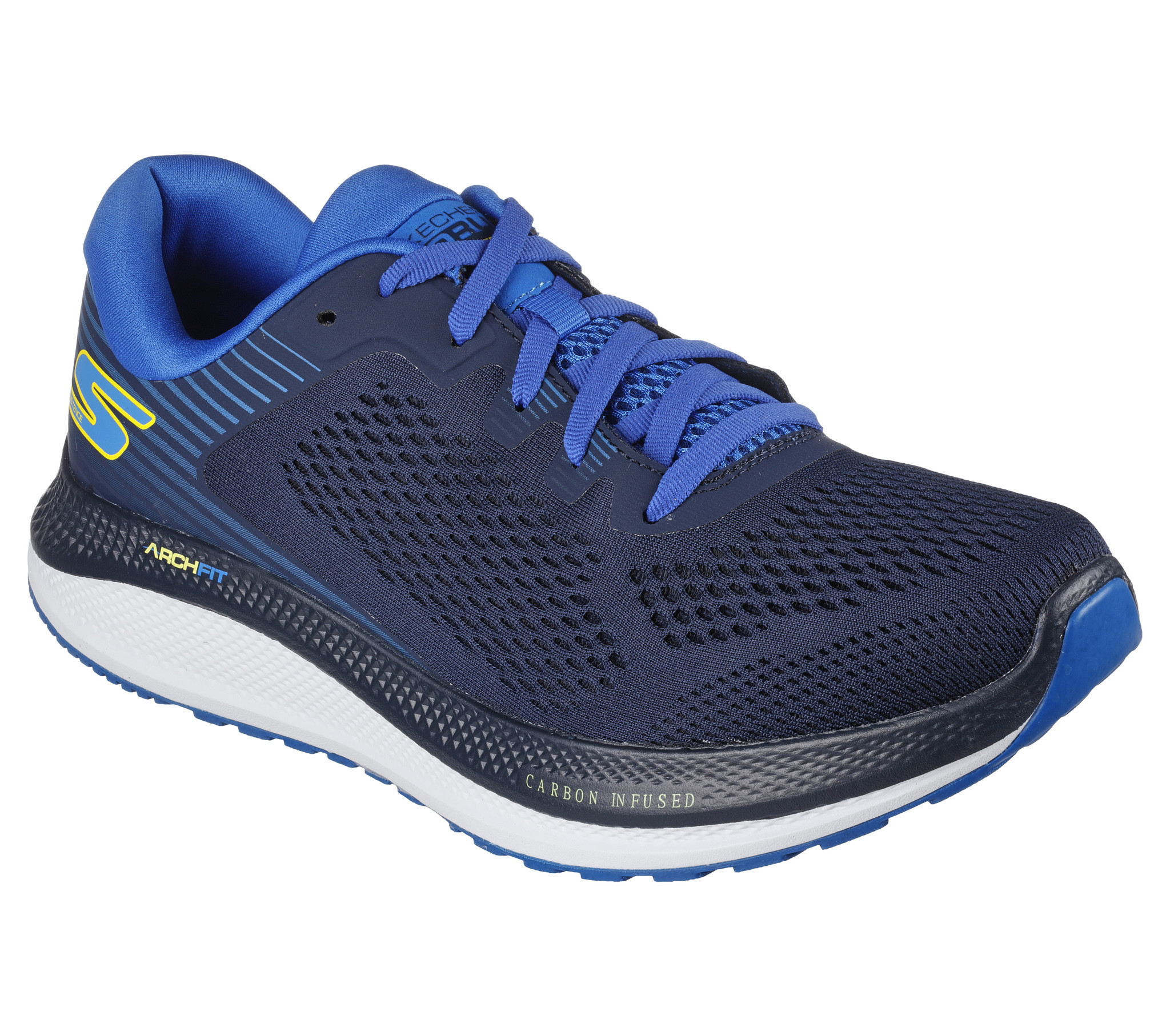 Supercomfortabele neutrale hardloopschoenen van Skechers. Deze ultra-dempende hardloopschoen heeft een ademende mesh bovenzijde met HYPER BURST® cushioned middenzool, HYPER ARC™ rocker bottom en een Goodyear® performance outsole.